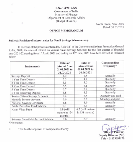 नई दिल्ली। छोटी बचत पर ब्याज दर में कटौती की गई है। सरकार ने बुधवार को घोषणा की है कि छोटी जमाओं पर भी वार्षिक ब्याज दर 4 फीसदी से घटाकर 3.5 फीसदी करने का फैसला लिया गया है। पर्सनल प्रोविडेंट फंड यानी PPF की ब्याज दर भी 7.1 से कम करके 6.4 प्रतिशत कर दिया गया है। इसके अलावा फिक्स्ड डिपॉजिट की ब्याज दरों में भी कटौती की गई है। देखें सूची…