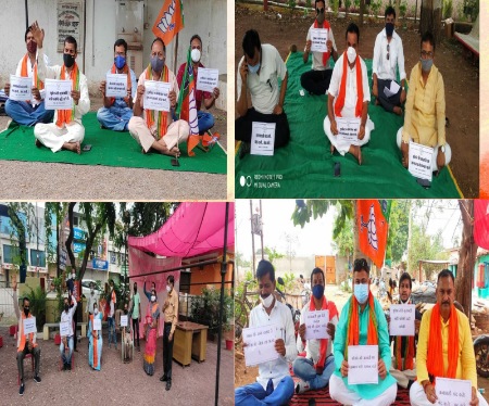 धरना प्रदर्शन में कोविड नियम का पालन करते हुए सभी मंडलों से अधिकतम 5 सदस्यों कि उपस्थिति धरना देकर गिरफ्तारी दी। प्रदेश भाजपा मंत्री उषा टावरी व जिला भाजपा अध्यक्ष डॉ शिव तमेर ने धरनारत विभिन्न मंडलों के थाना पहुचकर कार्यकर्ताओ का उत्साहवर्धन किया। चंडी शीतला मंडल द्वारा सिटी कोतवाली के सामने धरना दिया गया। जिसमें भाजपा के वरिष्ठ नेता शिव चंद्राकर, जिला भाजपा मंत्री दिनेश देवांगन,पूर्व मंडल अध्यक्ष नरेंद्र बंजारे,आईं टी सेल संयोजक राजा महोबिया, विजय ताम्रकार, पार्षद मनीष साहू मौजूद थे। उन्होंने आरोप लगाया कि इस अवसर पर भाजपा नेताओं ने कहा कि कोरोना महामारी के संकट काल में भी कांग्रेसी राजनीति लाभ देख रहे और ऑक्सीजन के लिए जूझ रहे मरीजों व मरने वालो के लाशों को एडिट कर केंद्र कि नरेंद्र मोदी सरकार को बदनाम करने हर हथकंडे अपना रही है। अपनी चोरी पकड़े जाने पर उल्टा भाजपा राष्ट्रीय अध्यक्ष जेपी नड्डा व उपाध्यक्ष डॉ रमन सिंह व प्रवक्ता संदीप पात्रा जी पर झूठा एफआईआर दर्ज करा दिया। जिसके विरोध में भाजपा के प्रत्येक कार्यकर्ता अब थाने के सामने खुद गिरफ्तारी देने पहूचकर भूपेश सरकार को चुनौती दे रहे है। कांग्रेस ने इस मामले में जनता का ध्यान बांटने पार्टी के नेताओ पर झूठे प्रकरण दर्ज कराए जा रहे हैं। जिसके विरोध में कार्यकर्ता थाने पहुंच कर गिरफ्तारी की मांग कर रहे हैं। आज शहर के मोहन नगर थाना, पुलगांव थाना, पद्मनाभपुर चौकी के साथ साथ जिले के 13 मंडलों के 12 पुलिस थाना व 4 पुलिस चौकियों के सामने प्रमुख नेताओ ने धरने में बैठकर गिरफ्तारी दी।