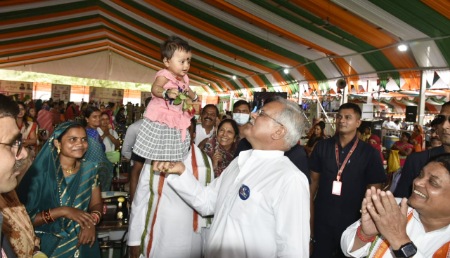 इससे पहले मुख्यमंत्री बघेल ने श्रम विभाग की अलग अलग योजनाओं के हितग्राहियों से मुलाकात की एवं उन्हें सामग्री वितरित की। इस दौरान मुख्यमंत्री श्रमिकों के बच्चों के साथ खेलते हुए भी नजर आए, एक बच्ची को मुख्यमंत्री ने गोद में उठाकर प्यार किया तो वहीं एक अन्य  बच्ची को उन्होंने अपने हथेली पर खड़ा कर उसे दुलार दिया। इस अवसर पर श्रम विभाग की योजनाओं की जानकारी देने वाली पत्रिका का विमोचन मुख्यमंत्री एवं उपस्थित अतिथियों द्वारा किया गया।