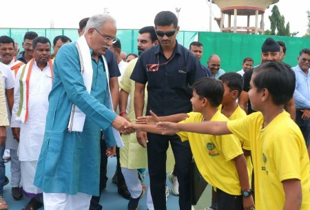 रायपुर (छत्तीसगढ़)। मुख्यमंत्री भूपेश बघेल ने आज छत्तीसगढ़ के पहले फीफा एप्रूव्ह सिंथेटिक फ़ुटबाल ग्राउंड विथ रनिंग ट्रैक का उद्घाटन किया। जगदलपुर प्रियदर्शिनी इंदिरा स्टेडियम के फ़ुटबाल मैदान को फ़ीफ़ा ने अंतरराष्ट्रीय मानक का प्रमाण-पत्र जारी किया है। मुख्यमंत्री ने स्टेडियम में फुटबाल ग्राउंड का गोल मारकर उदघाटन किया। उन्होंने स्टेडियम में आये नन्हे खिलाड़ियों से हाथ मिलाकर कहा “ये सभी मेरे नए दोस्त”।