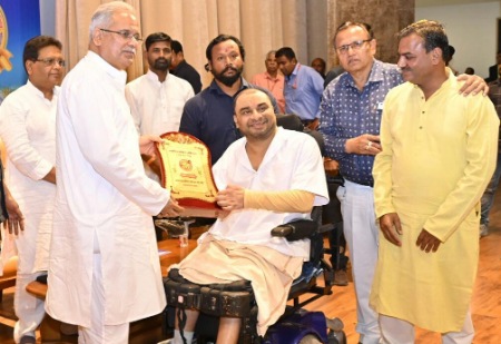 रायपुर (छत्तीसगढ़)। मुख्यमंत्री भूपेश बघेल आज शाम राजधानी रायपुर के पंडित डीडीयू में छत्तीसगढ़ मूर्तिकार चित्रकार संघ के तत्वाधान में आयोजित राष्ट्रीय अधिवेशन में शामिल हुए। उन्होंने इस दौरान उत्कृष्ट कलाकारों को सम्मानित कर प्रोत्साहित किया साथ ही राष्ट्रीय स्तर के प्रतिष्ठित चित्रकार तथा दिव्यांग बसंत साहू को 5 लाख रूपए की आर्थिक सहायता प्रदान करने की घोषणा की। कार्यक्रम में मुख्यमंत्री बघेल ने मिसेज यूनिवर्स 2022-23 प्रतियोगिता में दो खिताब अपने नाम करने वाले भिलाई-छत्तीसगढ़ की प्रेरणा धाबर्डे को भी सम्मानित किया। उन्होंने इस अवसर पर छत्तीसगढ़ मूर्तिकार चित्रकार संघ के तत्वाधान में प्रकाशित ‘‘छत्तीसगढ़ कला दर्पण’’ पत्रिका का विमोचन किया।