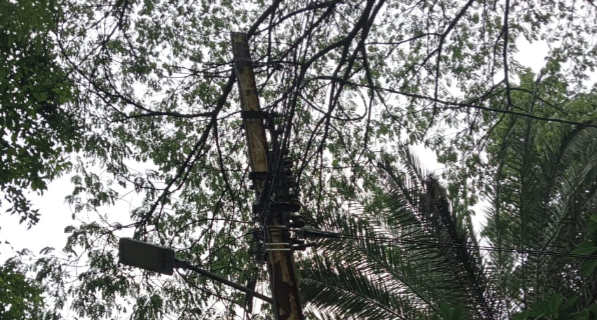 बिजली तारों में उलझे पुराने पेड़