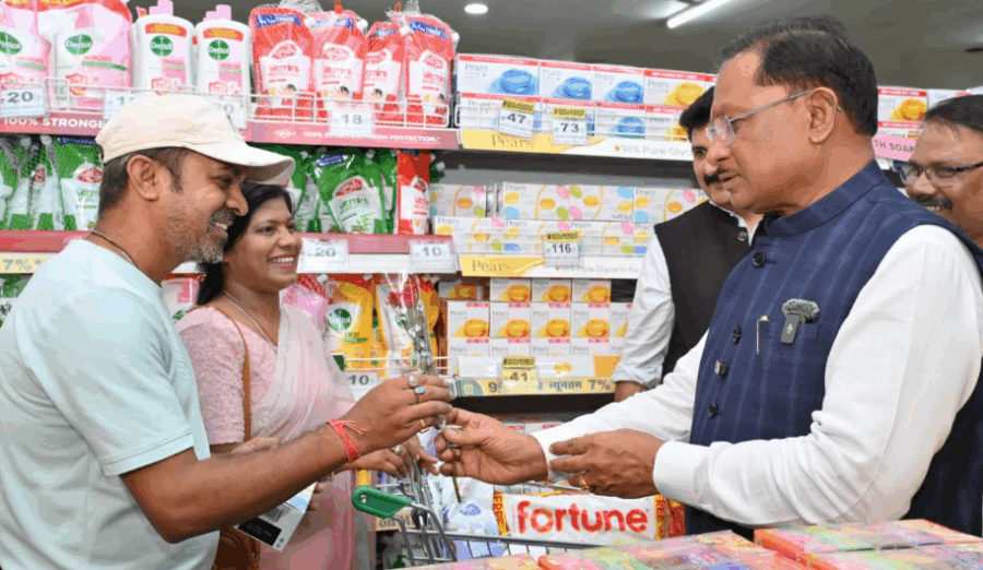 राजधानी रायपुर के सरोना स्थित शुभम “के मार्ट” में उस समय खास माहौल देखने को मिला, जब प्रदेश के मुख्यमंत्री श्री विष्णु देव साय स्वयं ग्राहकों के बीच पहुँचकर जीएसटी दरों में कमी का वास्तविक लाभ परखने लगे। मुख्यमंत्री ने खुद घरेलू सामान की खरीदारी की और यूपीआई से 1,645 रुपये का भुगतान भी किया।