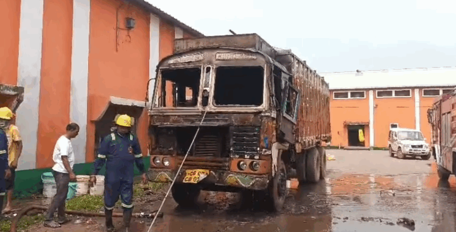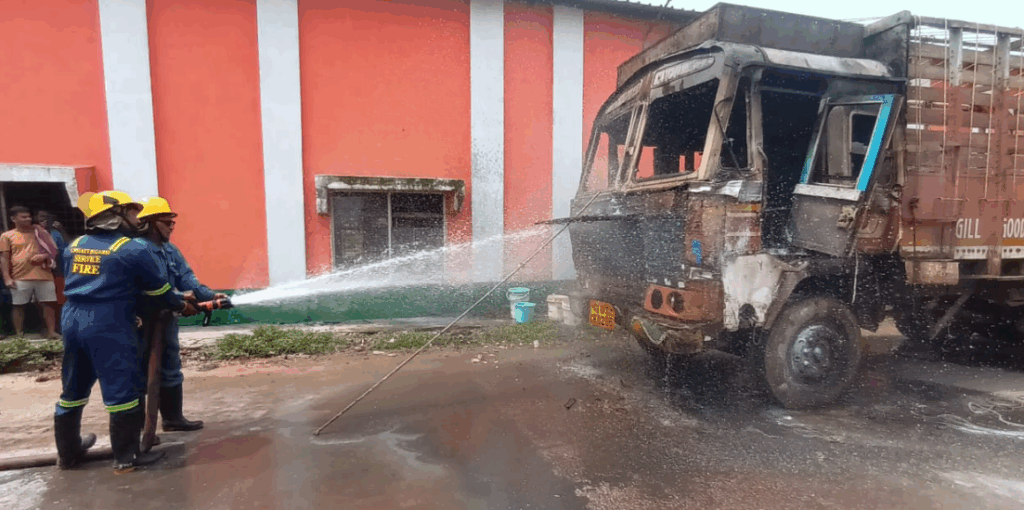 एफसीआई गोदाम में ट्रक में लगी आग, दमकल कर्मियों की सतर्कता से बड़ा हादसा टला