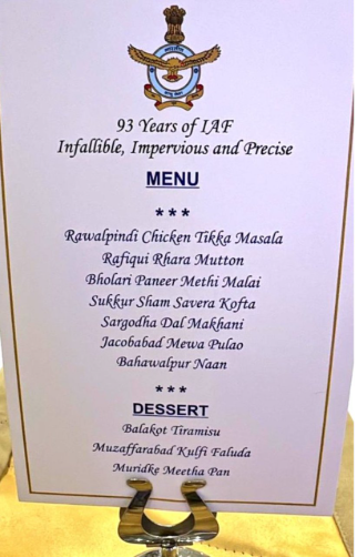 मेन्यू कार्ड के शीर्ष पर लिखा गया था — “93 Years of IAF”