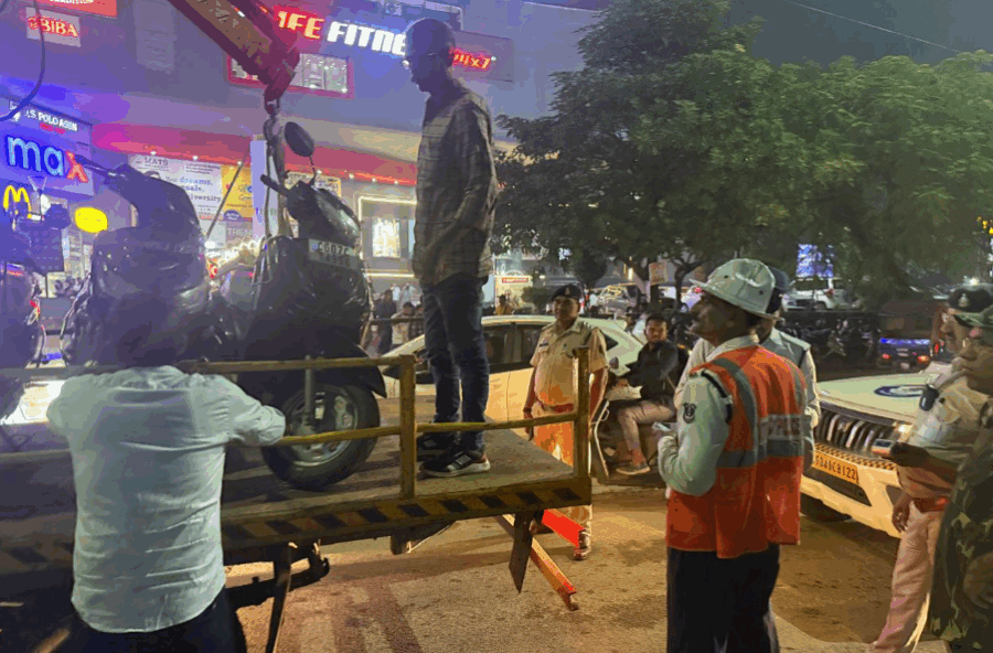 टीम ने लाउडस्पीकर से अनाउंसमेंट कर चेतावनी दी, क्रेन की मदद से अवैध रूप से खड़े वाहनों को हटाया और जब्त किया।