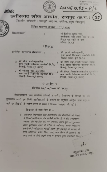 यह मामला कोरबा निवासी जितेन्द्र साहू की ओर से दर्ज की गई शिकायत पर आधारित है। उन्होंने लोक आयोग के समक्ष आरोप लगाया था कि विश्वविद्यालय के अंदर परिवारवाद, पक्षपात और नियमों की अनदेखी कर पदों का दुरुपयोग किया गया।