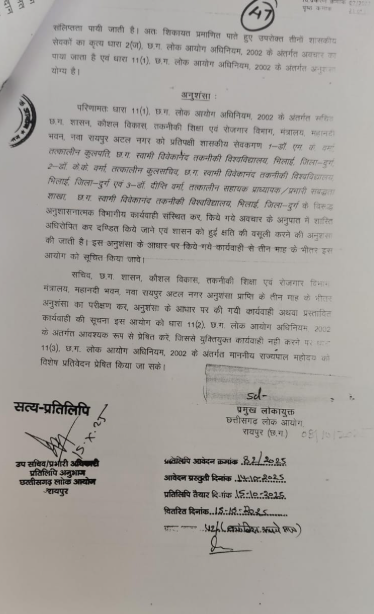 🧾 कोरबा निवासी की शिकायत पर लोक आयोग ने की कार्रवाई